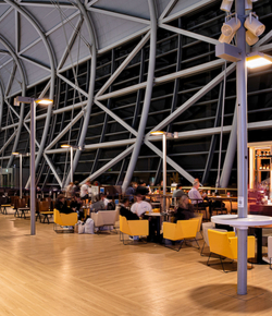 אזור מסחרי חדש כולל 13 חנויות בשטחי הטיסות הבינלאומיות הנכנסות והיוצאות ורחבת אוכל רחוב.