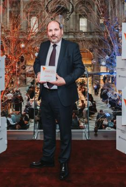 כיתוב תמונה: כריסטופר פוטס, מנהל תפעול וטכנולוגיה ראשי, EBC Financial Group (UK) Ltd, המייצג את EBC Financial Group מקבל את פרס הברוקרית הטובה ביותר לביצוע בטקס פרסי הסוחרים המקצועיים לשנת 2025 מטעם Holiston Media.