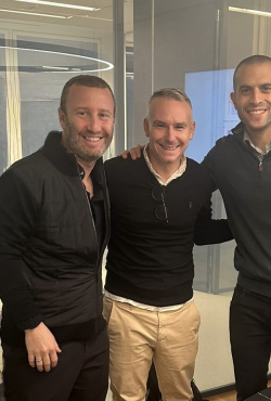 (משמאל) יוני אבני, (מימין) מתן מלכא, מייסדי ניוטון עם סמי פיוגלר מייסד Rainbow (צילום ניוטון מרכזים חינוכיים)