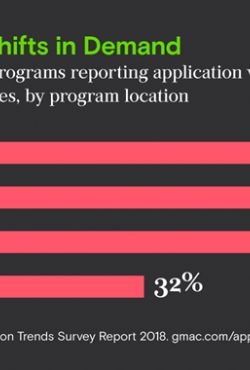 בכל סוגי תכניות הלימוד המתקדמות בבתי הספר למנהל עסקים–כולל תוכניות לתואר שני במנהל עסקים MBA)), לתואר שני בעסקים, ולתואר דוקטור (PhD)–מרבית התכניות באסיה-האוקיינוס השקט, קנדה, ואירופה קיבלו יותר בקשות קבלה ללימודים מאשר בשנה שעברה. הגידול באזורי קנדה ואירופה נובע בעיקר מבקשות קבלה בינלאומיות, בעוד שבאזור אסיה-האוקיינוס השקט, צמיחה מקומית היא זו המניעה את הגידול במספרים.