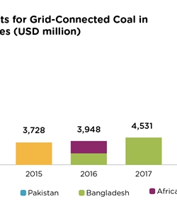 בין 2013 ל-2019 התחייבו 42 מיליארד דולר לתחנות כוח פחמיות המחוברות לרשת ב-18 המדינות שנחקרו. ביניהם, בנגלדש, הודו ופקיסטן קיבלו את רוב ההתחייבויות הפיננסיות למפעלי פחם חדשים, ואילו אפריקה, מדגסקר, מוזמביק, מלאווי, ניז‘ר וטנזניה מארחות פיתוח פעיל של מפעלי פחם.