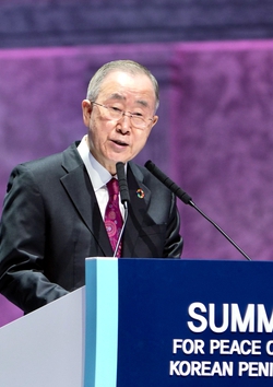 בנאומו המרכזי, מר באן קונן על כך שחרף העובדה שרבים דוגלים בשאיפותינו הנלהבות ובמאמצינו השונים... לא הצלחנו להגיע לפריצת דרך מתמשכת" בחצי האי. הוא ציין את מבול ניסויי הטילים האחרונים של צפון קוריאה, וקרא לאו"ם ליישם את הסנקציות שהטילה עליה תוך נקיטת צעדים כדי לסייע למנהיגי צפון קוריאה "לחזור לשולחן הדיאלוג".