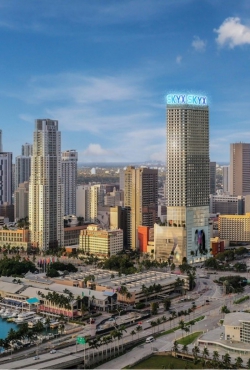 הבניין החדש ממוקם במרכז העיר מיאמי ב- US-1, מול מיאמי היט FTX ארנה ומפרץ ביסקיין