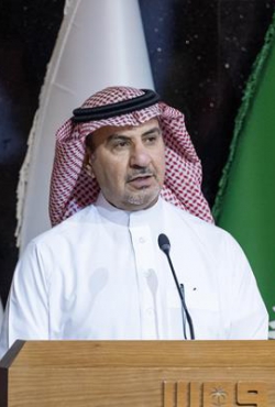 ח‘אלד אל-מודאיפר, סגן השר לענייני כרייה, משרד התעשייה והמשאבים המינרליים במסיבת העיתונאים של פורום מינרלי העתיד