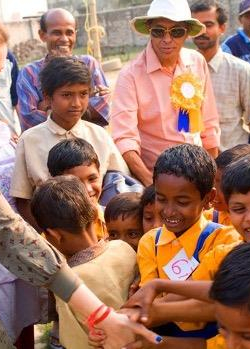 Indrani Pal-Chaudhuri באינטראקציה עם ילדים בבית הספר Ramakrishna Vedanta Vidyapith בהודו - EBC [צילום: Shakti Regeneration Institute]